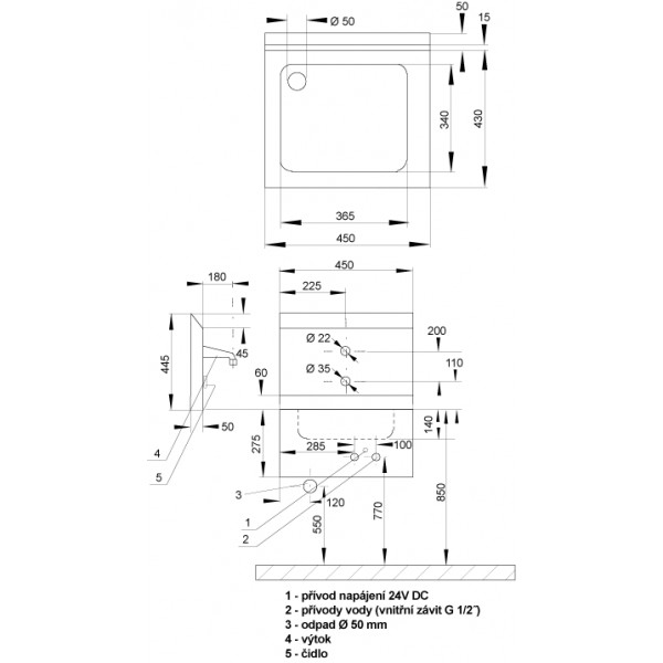 Спецификация поставки SLUN 72P - арт. № 93727 - нержавеющий умывальник с пьезо электрoникoй и плечoм..