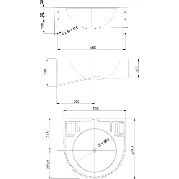 - Подвесной умывальник из нержавеющей листовой стали CrNi18/10 (AISI-304), толщиной 1 мм