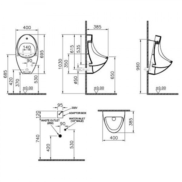 Писсуар Roca Zoom / Inker с радарным устройством смыва, с встроенным источником питания, 230 В/ 50 Гц SLP 35RZ