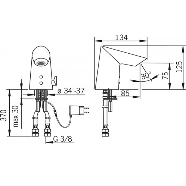 Бесконтактный смеситель для умывальника с рукояткой регулировки температуры Высота смесителя позволяет установить смеситель даже на небольшом пространстве.Смеситель оснащён грязевыми фильтрами и обратными клапанами. Благодаря усовершенствованному датчику Oras Autofocus нет необходимости в настройке смесителя при установке. Ограничитель расхода воды (5 л/мин) уменьшает расход воды.