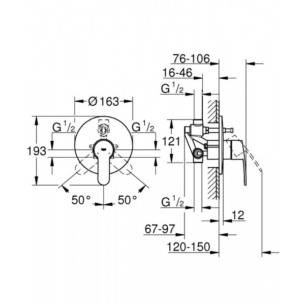 Монтаж - настенный, скрытый;Применение - для ванны/душа;Механизм - однорычажный; Картридж - керамиче..